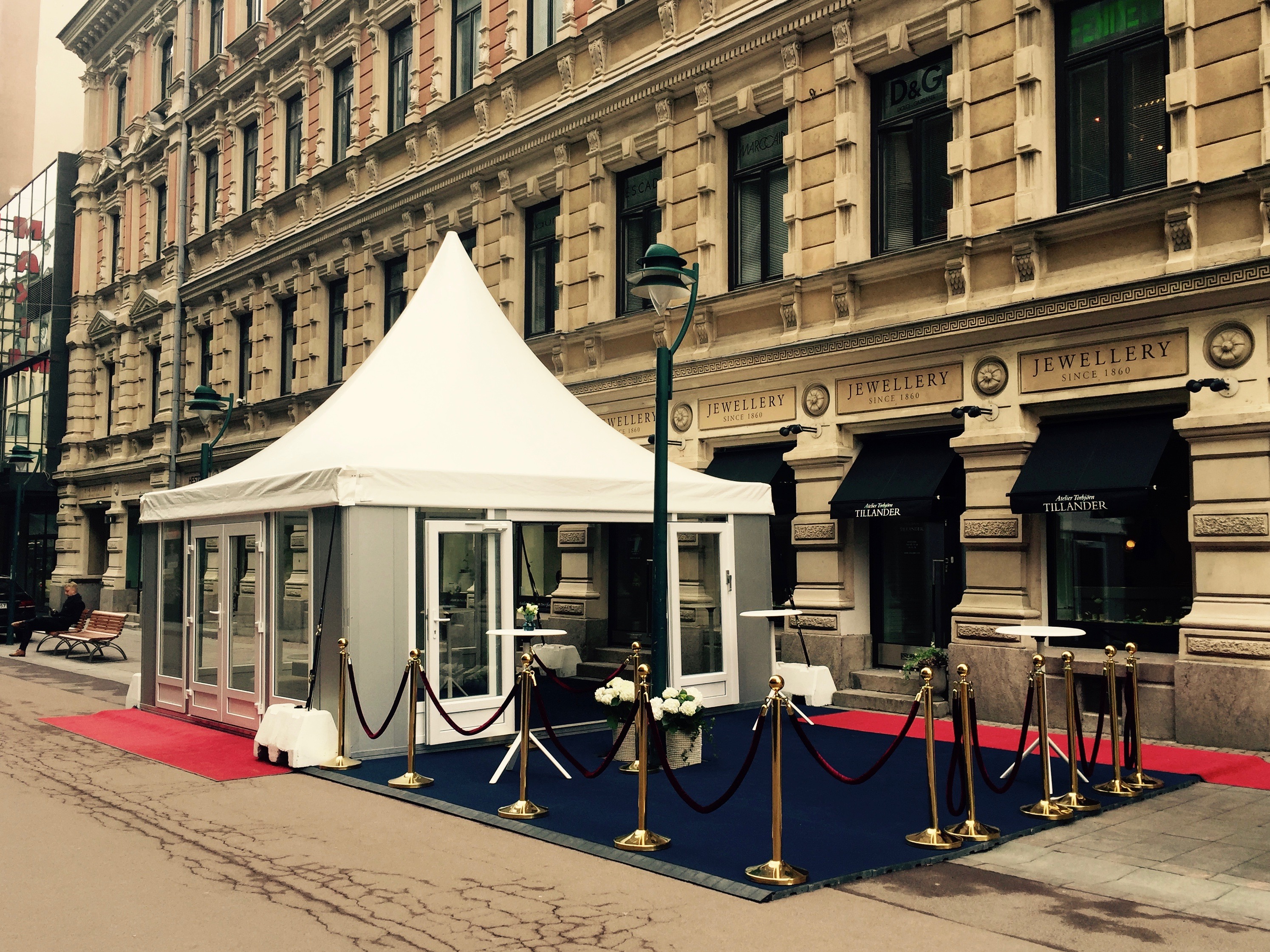 London on tyylikäs juhlateltta, joka sopii esittelyteltaksi, VIP-tilaksi tai vaikka näyttäväksi sisääntuloaulaksi. Se voidaan toteuttaa pehmein telttaseinin tai ylellisemmillä lasiseinillä. London-telttoja voidaan myös yhdistellä isommiksi kokonaisuuksiksi.